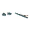 Набор запонки овальные и зажим для галстука камень голубой апатит