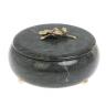 Шкатулка круглая "Медведь" из черного змеевика 15х15х11 см