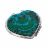 Зеркало карманное "Сердце" из малахита с хризоколлой цвет серебро
